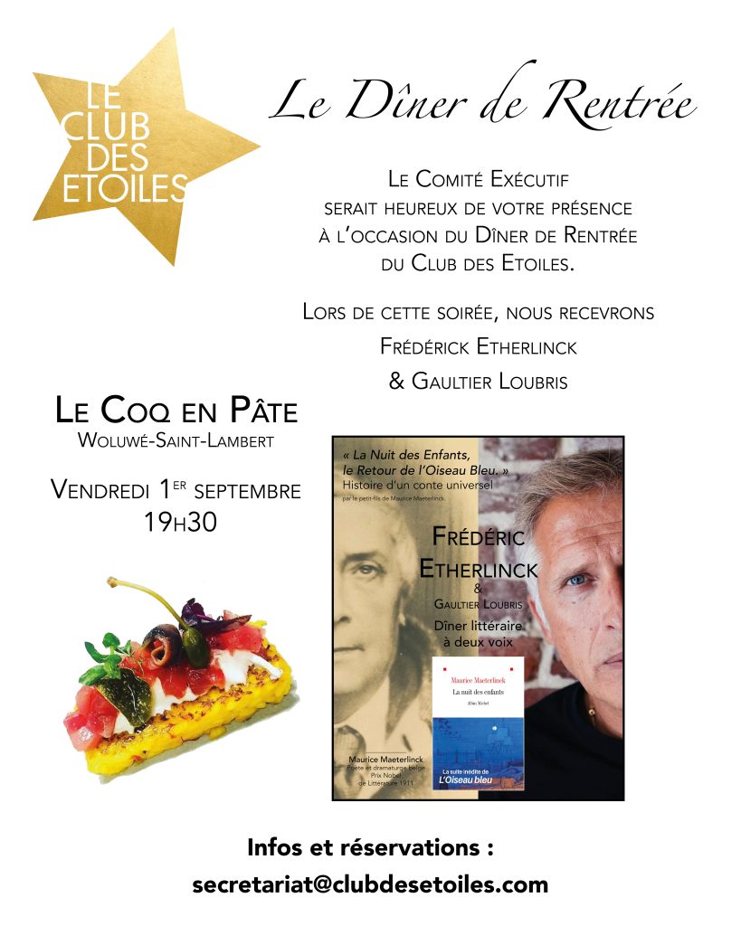 Le Club des Etoiles est un social & business club belge qui organise des évènements en Belgique et à l’étranger : déjeuners-conférences, dîners littéraires, dégustations culinaires, dîners concerts, repas à thèmes… et il rassemble des chefs d’entreprise et des personnalités qui siègent à une position importante dans la société belge ou internationale et ce dans divers domaines tels que la finance, la culture, la diplomatie, la politique, l’art ou encore le milieu caritatif.